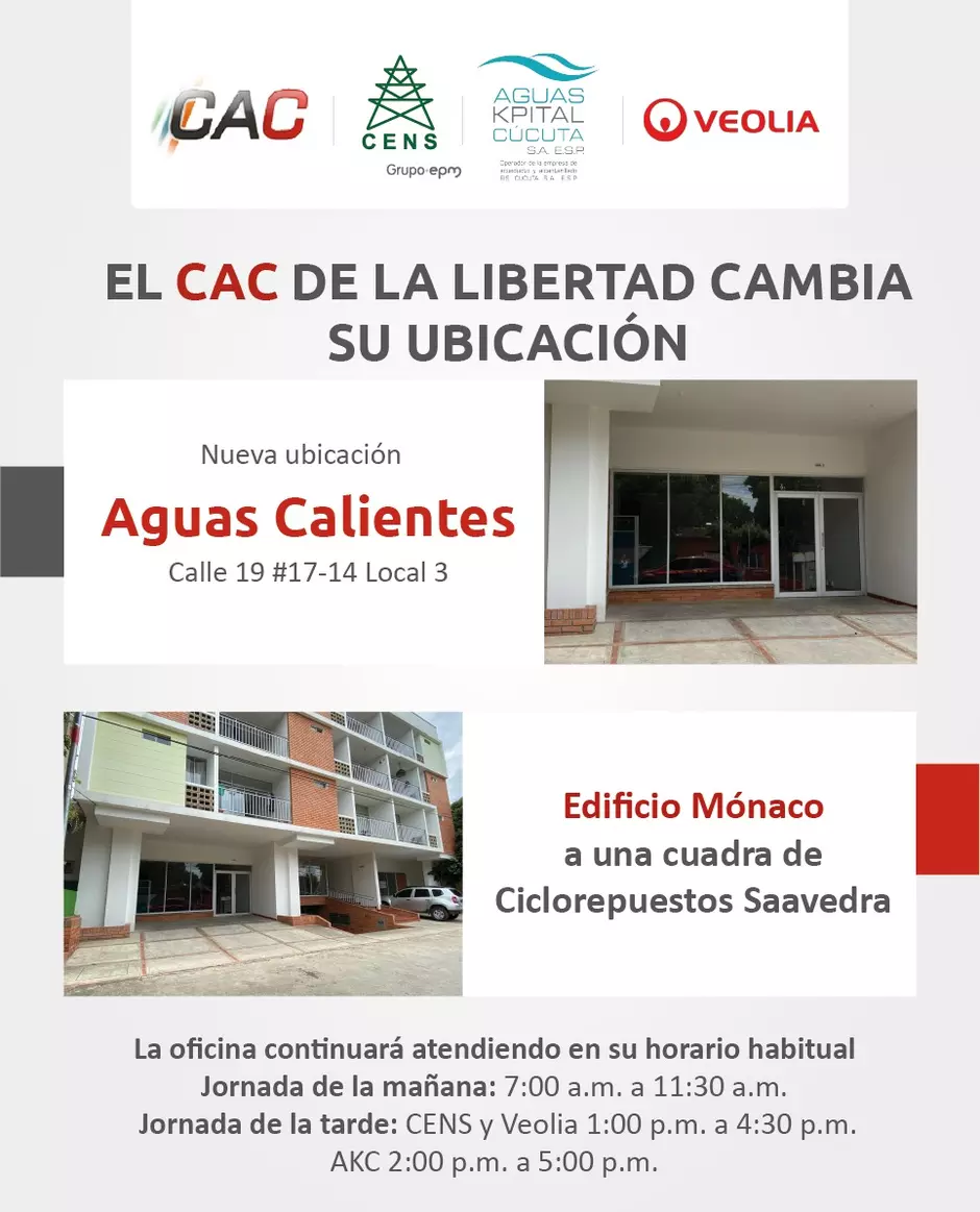 En Veolia Aseo Norte de Santander respetuosamente nos permitimos informar a todos nuestros usuarios del servicio que, el punto de atención al cliente ubicado en la Ciudadela La Libertad cambia de ubicación a partir del día lunes 22 de agosto de 2022.